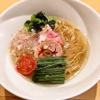 つけ麺は、もはや「飯田式」と呼ばれ始めている(ググってみたら誰も言ってなかった(笑))昆布と鰹の水出しに麺が浸かって出てくるタイプ。清湯つけ麺のスタンダードになりつつある。