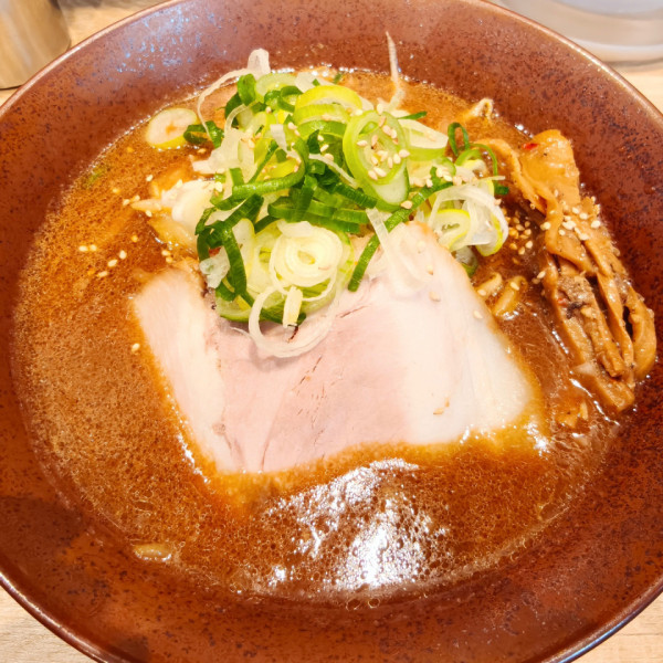 東京都千代田区九段北1-7-3マップで見る赤味噌ラーメンの動物清湯出汁に八丁味噌と牡蠣のスープは熱々の濃目で宛ら名古屋のどて煮の様な味わい。麺は加水高目の中太スト麺でもちもち弾力。蓮華の素材とカーブ良好。途中生卵をオーダーしすき焼きの様にして旨し。