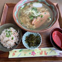 出汁が効いた美味しい沖縄そばで、じゅーしぃも美味しく満足だった。