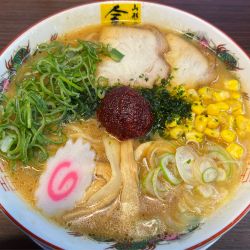 入って左手に券売機。コ形カウンターのみ。男性2切り盛。限定の山形冷やしらーめんもあったので、一瞬迷ったが、今回は久しぶりに金ちゃんの基本を確認したかったので、標記デフォをセレクト。