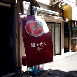 「担々つけ麺平打ち麺小盛 850円」@担々めん 漁〆の写真馬場の駅から少し離れた路地に今月オープン。レポが少ないので不明点が多いが、とりあえず食べに来ました。店はすぐ判明、店頭の幕はデカいが、店内はずいぶん狭小です。