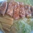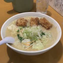 メニューには鶏と豚の唐揚げを乗せたラーメンがあります