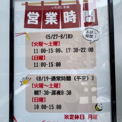 | 営業時間 | 8時〜14時半 17時半〜24時 日曜日 11時〜14時半 |