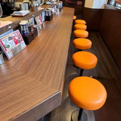店内は白基調で落ち着いた、今日現在下に棚のある厨房向きL字カウンター12席のみでお水は出して頂きました(右奥にお手洗いあり)。