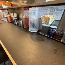 店内は東京油組統一の白基調で縦長な、下に棚のある厨房向きカウンター8席のみでお水は出して頂きました(壁側にハ... 続きを見る