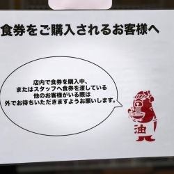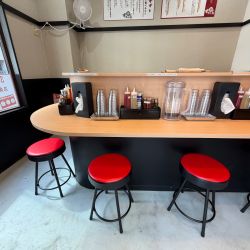 店は東京豚骨らぁめん 至(未訪)があった場所。店内は改装されていて綺麗だ。奥が厨房で手前がU型のカウンター9席。11時半頃で客入りは5~6割。店員は中年男性が2人。