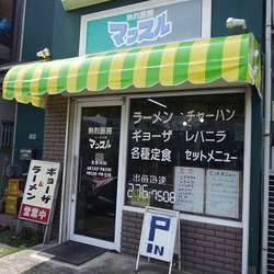 | 備考 | ラーメン店らしからぬ洒落たグリーン系の看板は見落とされ勝ちかも。 向かいは野菜の無人(?)販売所、同じ並びに似た看板のクリーニング屋。 定食(ライスおかわり付き)やチャーハンが人気らしく、夜はおつまみとアルコールもあり。 価格もリーズナブルで、近所の人が気軽に利用している模様。 なんと、営業14年とか。店名の由来はスタッフに尋ねてみて下さい。 |