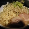 | 備考 | 2009.11.14現在 手打ちつけ麺、限定30食 <メニュー> 【手打ちつけ麺】 並(150g)大盛り(200g):¥700 特盛り(300g):¥800 メガ盛り(400g):¥900 MAX(500g):¥1,000 かに味噌味:+¥100 【ら~めん】 葱とニンニク仕立て:¥800 【とっぴんぐ】 豚ばら、煮玉子、メンマ、チャーシュー、納豆、野菜、胡麻和えネギ、チーズ、〆節ライス:¥100 ※葱だく、節盛、脂多めは無料です。 |