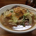 三種熟成味噌めんをいただく。茹でられたもやし、細切り人参、そこに振りかけられた刻みネギ、メンマ、海苔、チャーシュー2枚、味玉の半切れの具材。スープからいただく。濃厚な味噌の味が旨い、動物系の旨味に野菜の旨味も感じられる、こってり感もあり旨味が広がる。メンマはコリコリ食感で味付けは薄目、さっぱり感を出して来る。麺は太麺の縮れ麺、シコッモチの食感でしっかりとした食感がある、麺自体に... 続きを見る
