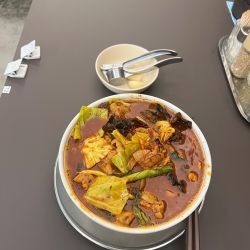久し振りに〆ラー伺いました。イチオシらしく出ていたので、頂きました。ベースは韓国風ホルモン炒めがのっている感じでした。最初に辛子もやしを頂き、無料の生ニンニクをを1個投入。決して激辛ではなく個人的にはマイルドな感じでした。スープもホルモンも程よくバランスが良かったです。