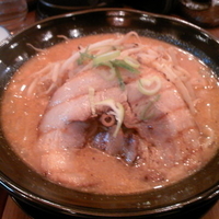 チャーシューは表面が炙られており香ばしく、脂身がなく噛みごたえのしっかりした肉肉しいもの。こちらも一般的なチャーシューと違い「トンテキ」と言ってもいいような変わったつくり。