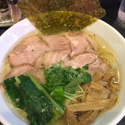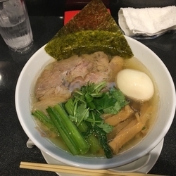 極塩、動物系不使用、透き通る煮干し、アゴ出汁、表面はオイリーだからか乾物魚介ダシだけでコクがありますね〜塩分が強く感じたら割スープまである、細麺との相性も良いですね♪ 880円ですがチャーシュー麺みたいにチャーシュー多め、青梗菜、穂先メンマ、三つ葉なども合っていて美味しかったです。