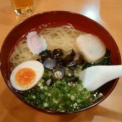 「冷やししじみラーメン」@青森 十三湖 本家しじみらーめん 東京秋葉原店の写真2017年7月中旬 甚平さんのレポで気になっていたこちらへ冷やしを食べに訪問。店内はねぶたの絵が貼られて青森の雰囲気。カウンター6席、テーブル12席で中年男性が一人で切りもり。休日の昼過ぎで先客2名、後客1名と客入りは寂しい。