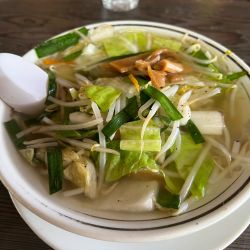勝浦タンタンメンが白浜で食べられる。どんぶりからスープが溢れるくらいたっぷり入っている。